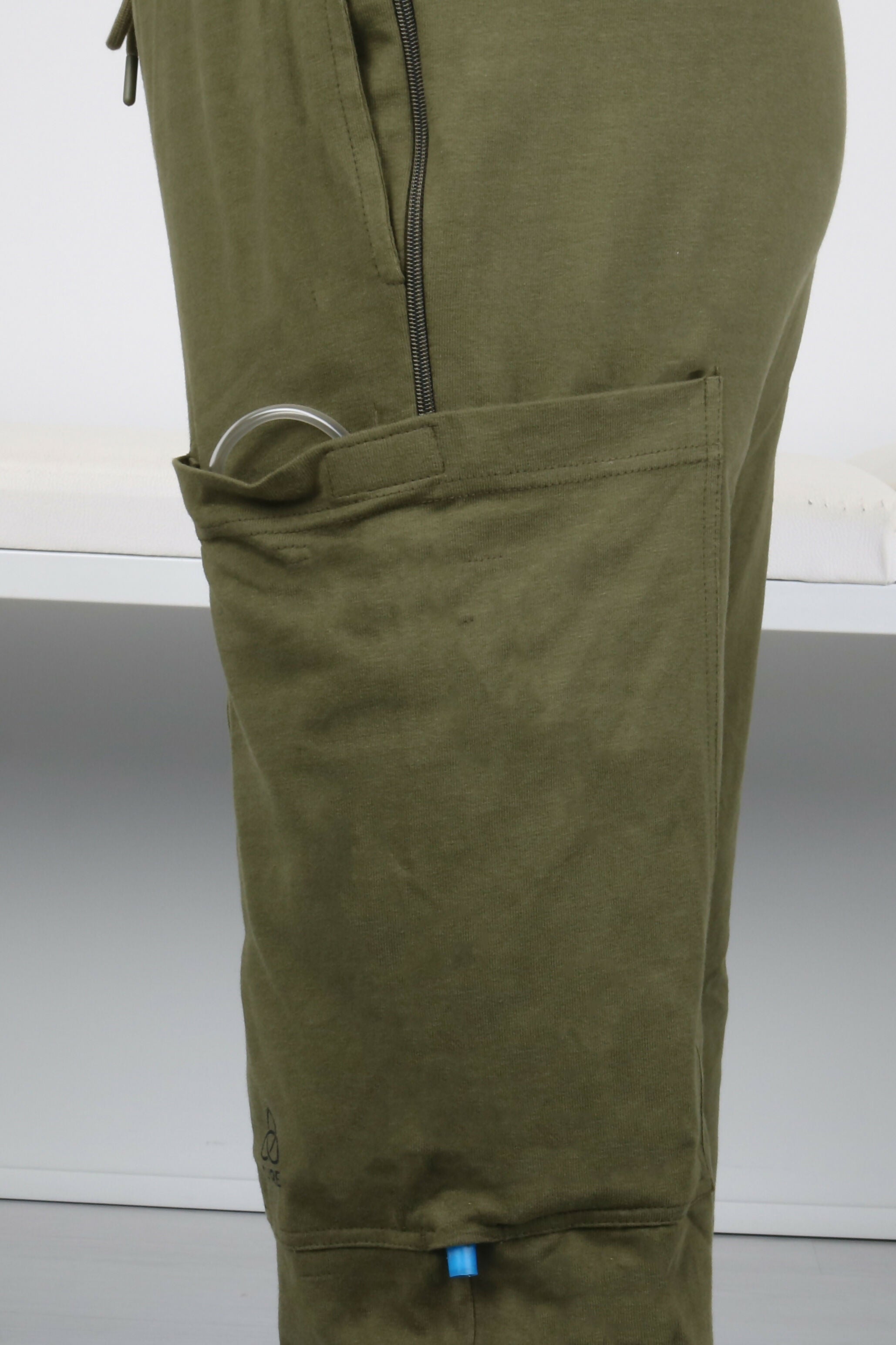 Die dezent gestalteten Cargotaschen auf beiden Seiten verfügen über versteckte Öffnungen, durch die Drainageschläuche und Urinbeutel sicher hindurchgeführt werden können. Die Drainageöffnungen am Taschenboden ermöglichen das Entleeren der Beutel, ohne die Hose ausziehen zu müssen.